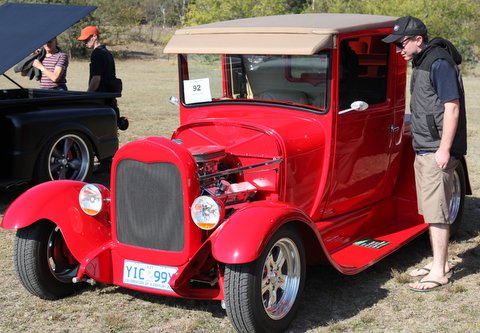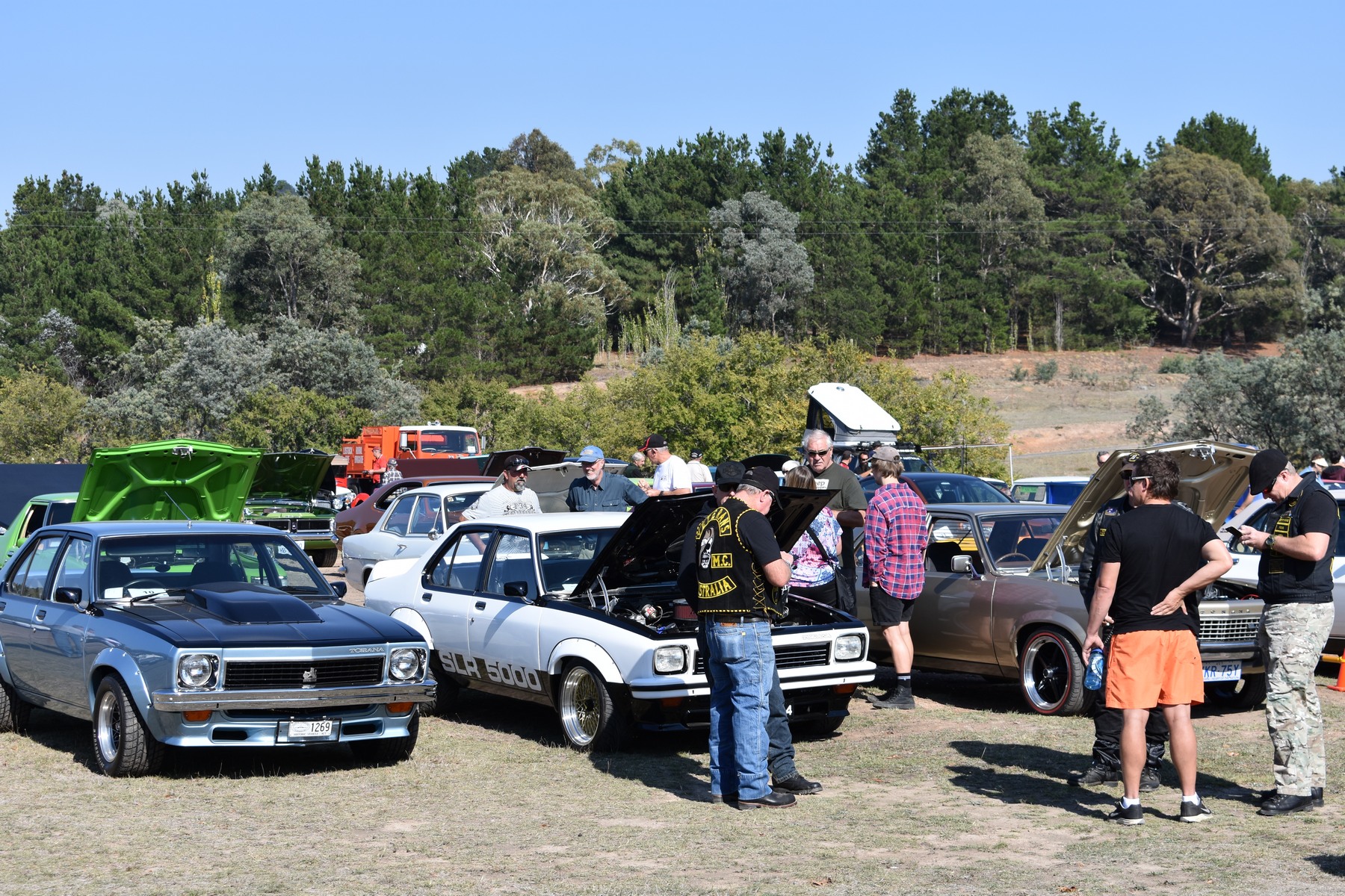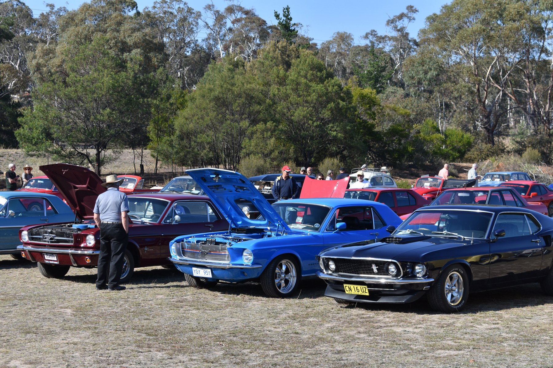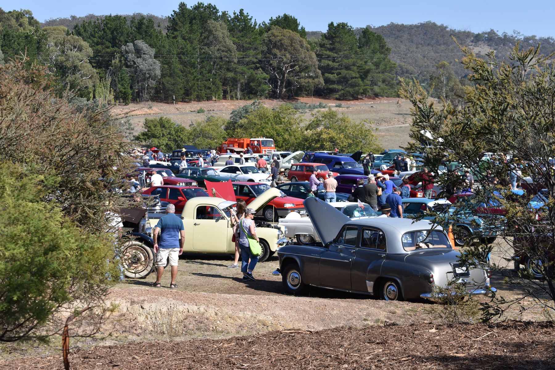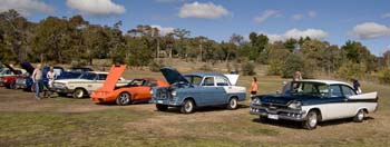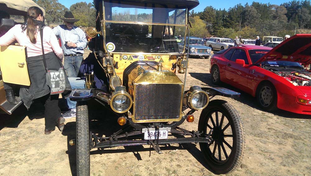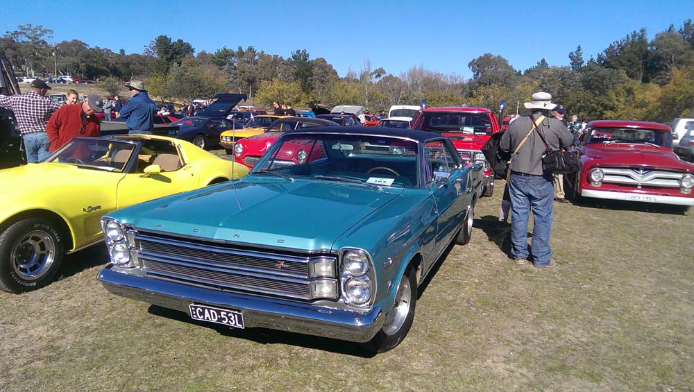 The Europeans made a strong showing with a Beetle, a Porsche, several mint Mercedes Benz’s, a BMW, a Renault Meganne RS265, Audi TT convertible, a nice red Lancia HPE and a Citroën Traction Avant. The Americans presented with a beautiful Ford Model T, three Ford Mustangs with a 67 coupe, a very original 68 390GT fastback, a very nice new Shelby GT500 convertible. A hot bright yellow Camaro, a number of Plymouth Belvederes joined the line up with a hard to miss red 56 F100 step side pickup (perfect for running Wamboin moonshine).
