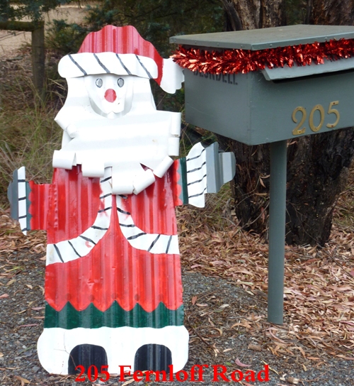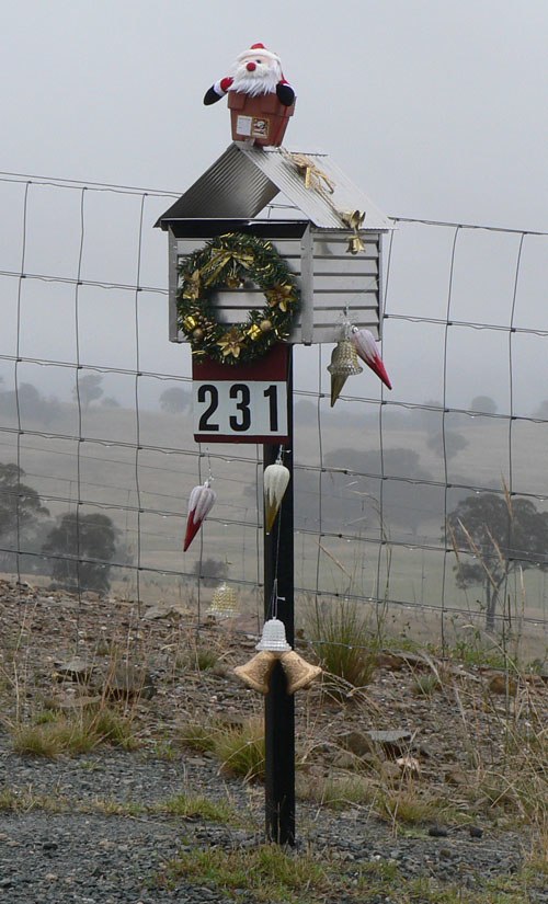 After viewing every mailbox, we then reduced the list to ten. This was no mean feat as the standard had indeed risen from last year’s efforts. After much deliberation we presented our shortlist to the judges. Pete Harrison, Mayor of Palerang Council and Darryl Bourke, President of the Bywong Community Association conferred for some time at our Christmas party before finally reaching a decision.