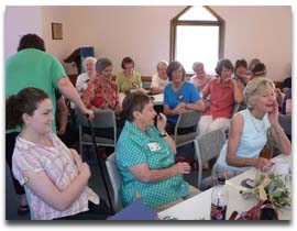 More than 70 women joined the luncheon including Palerang Councillors Catherine Moore, Judith Turley and Anne Goonan. Before the buffet lunch began, the women listened with interest to a presentation by Eleanor Gregory, a political reporter for ABC radio whose parents live in Palerang. The theme for the Day and for Eleanor’s presentation was: “How women can help stop poverty by 2015”. Eleanor shared many statistics from the United Nations to clearly convey what real poverty is and how many people suffer because of it—especially women. She then focused on poverty within our own country and culture, and ways many of us can help children escape the downward spiral of poverty through education.