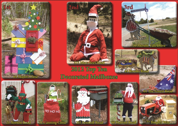 Following last year’s inaugural Christmas decorating competition, the Wonderful Women of Wamboin (WWOW) again challenged residents to decorate their letterboxes. This year we provided three baskets filled with gifts for the first, second and third prize winners.