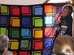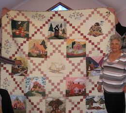 However, at the other end of the scale, two of our group with very nimble thimbles displayed a couple of stunning quilts they had recently completed. Liz Hendrickson must be the most prolific quilter I know. The pattern and colours in her quilt echoed those of a stained glass window. While Leatrice Behardien’s quilt displayed an intricate series of panels depicting thirteen fairy-tale-type houses. Each panel took one month to complete.