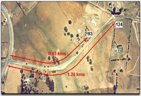 Rural Road Numbers are calculated by dividing the distance in metres from the nominated start of the road by 10, and rounding down to an odd (for properties on the left) or even (for properties on the right) number as required. For example a property entrance 930 metres from the start of the road on which it is located, and situated on the left-hand side of that road, will have the Rural Road Number 93. If the property entrance were on the right-hand side of the road, then the Rural Road Number would be 92.